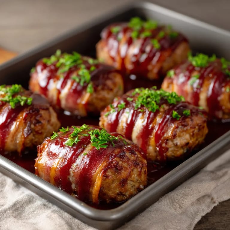 Save to Pinterest This bacon-wrapped meatloaf recipe transforms a classic comfort food into perfect individual portions that are juicy on the inside with a crispy bacon exterior. The miniature size makes them cook faster than traditional meatloaf while maximizing the bacon-to-meat ratio for incredible flavor in every bite.