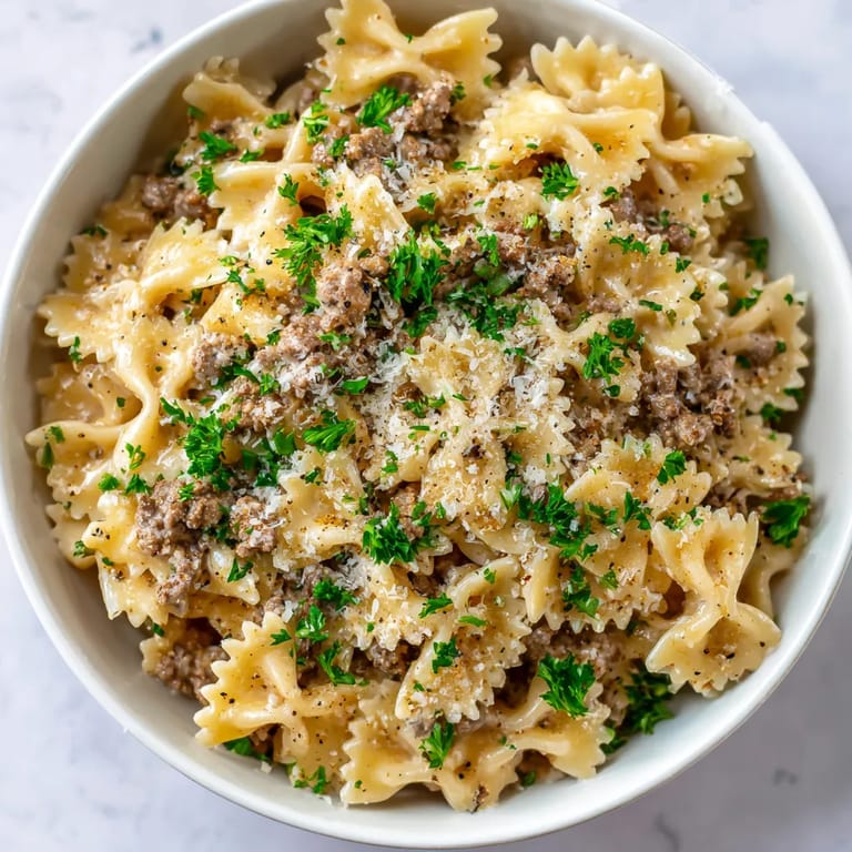 Save to Pinterest This Beef and Bowtie Pasta with Alfredo Sauce is my go-to meal when I need a quick crowd-pleaser and want something hearty but still comforting. The combination of tender ground beef and silky Alfredo sauce hugging each piece of bowtie pasta makes every bite rich and satisfying. It is a versatile recipe that works for both cozy family dinners or when you want to impress guests with ease.