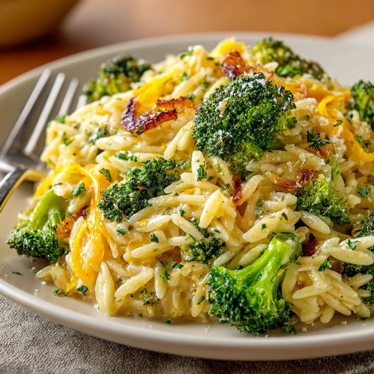 Save to Pinterest This one-pan broccoli cheddar orzo skillet is everything I want on a busy weeknight when I crave creamy comfort food but want minimum mess. Tender orzo soaks up flavor from melting cheese and crisp broccoli—all ready in just thirty minutes, no separate pots or draining needed. The textures and flavors remind me of a cozy casserole, minus the effort.