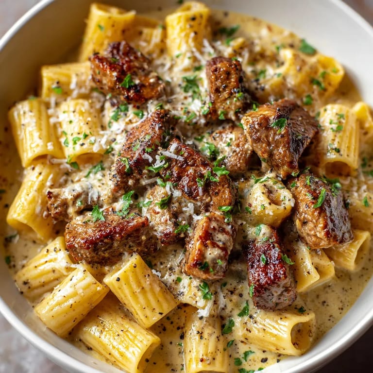 - Rigatoni pasta: This tube-shaped pasta holds up well to creamy sauce and allows the steak to nestle into every bite. Choose a bronze-cut or quality Italian brand for best texture.