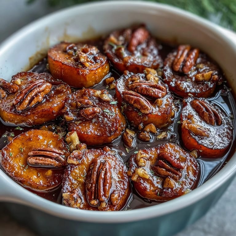 Candied yams sit in this beautiful space where they're sweet enough to feel indulgent but not so heavy that they overshadow what you're serving alongside them. They complement roasted chicken, ham, turkey, or even just a simple green salad better than you'd expect from something this caramelized. The butter and pecans add richness that rounds out a plate without making you feel stuffed.