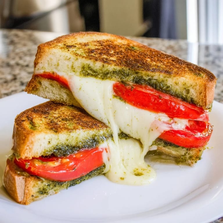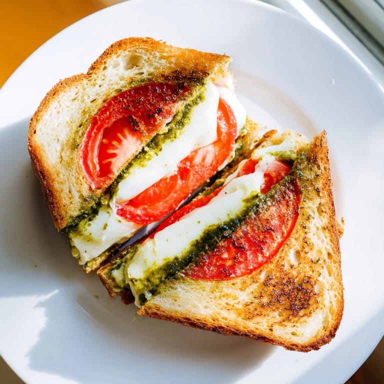 Save to Pinterest There's something magical about the moment when butter hits a hot pan and you catch that first whiff of toasting bread. I discovered this sandwich by accident one summer afternoon—I had fresh mozzarella, a ripe tomato from the farmer's market, and a jar of basil pesto taking up space in my fridge. Instead of assembling them into a salad like a sensible person, I thought, what if I made this into the ultimate grilled cheese? The first bite was pure revelation: crispy sourdough, melted cheese, and that bright herbaceous pesto creating something that tasted gourmet but felt completely effortless.