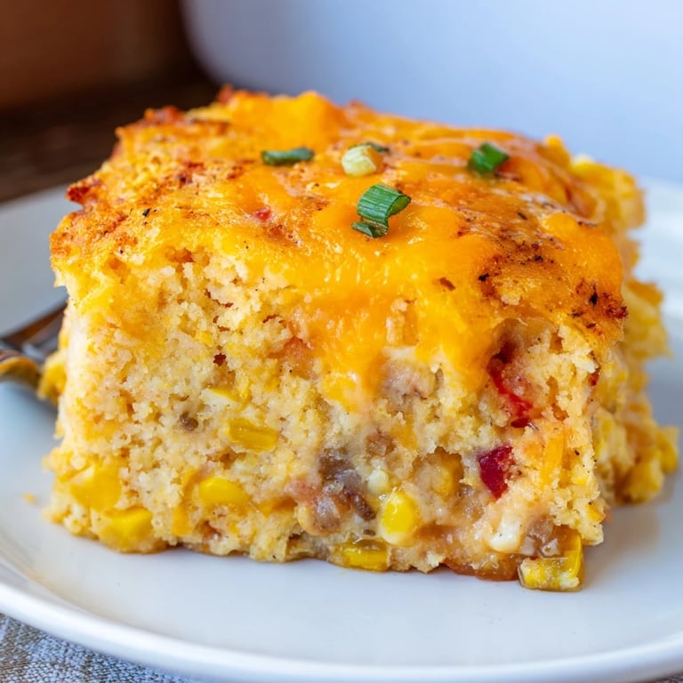 Save to Pinterest A hearty, flavorful casserole featuring tender cornbread, zesty Cajun spices, sweet corn, and gooey melted cheese—a perfect comfort food for gatherings or weeknight dinners.