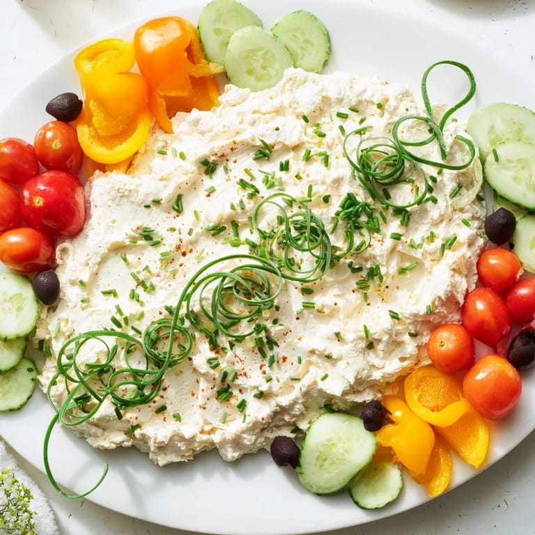 Save to Pinterest A festive, colorful appetizer platter featuring a creamy cheese spread, arranged to resemble twinkling Christmas lightsβperfect for holiday gatherings.