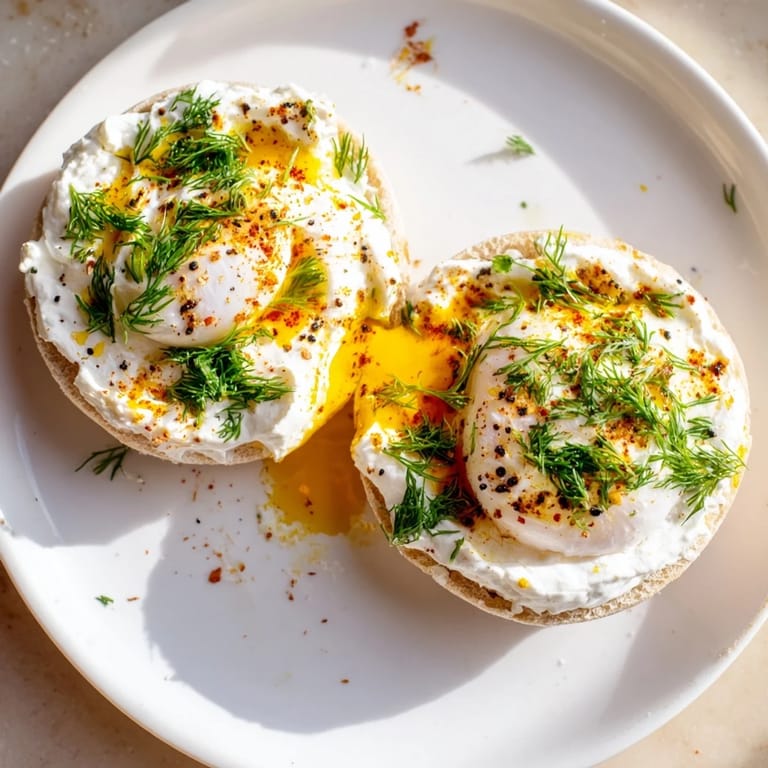 - Mix Greek yogurt with finely grated garlic, chopped herbs, and salt in a bowl until it's creamy and fragrant. Spread it generously over your toasted English muffin halves—don't be shy, this is where half the magic happens.