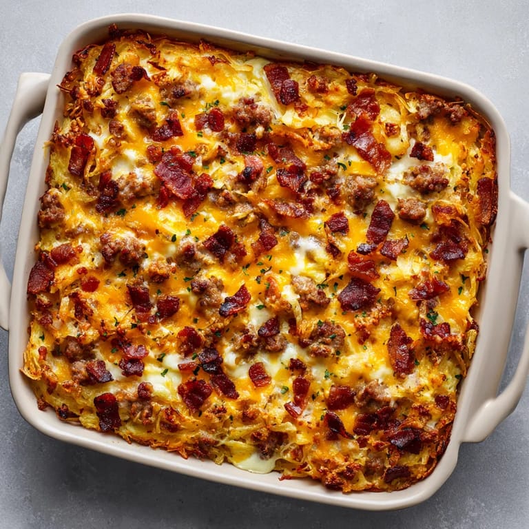 Save to Pinterest This irresistibly comforting breakfast casserole brings together sizzling sausage crisp bacon creamy cheeses and golden hash browns with a bold ranch twist It is the ultimate brunch crowd pleaser and makes every holiday morning something to look forward to