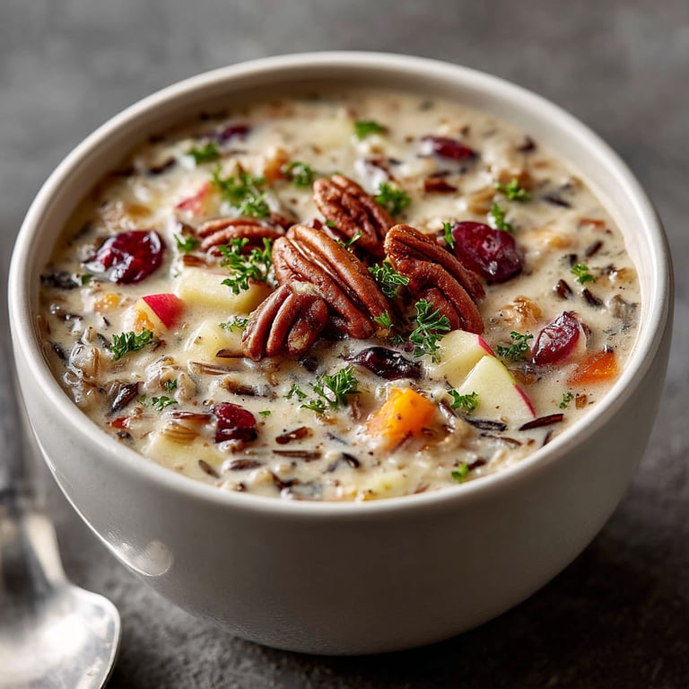 Save to Pinterest This cozy Cranberry Wild Rice Soup brings together tart cranberries and nutty wild rice in a velvety broth with earthy herbs and tender vegetables. It is the kind of bowl you crave on chilly autumn afternoons or when you want to evoke Thanksgiving flavors any time of year.