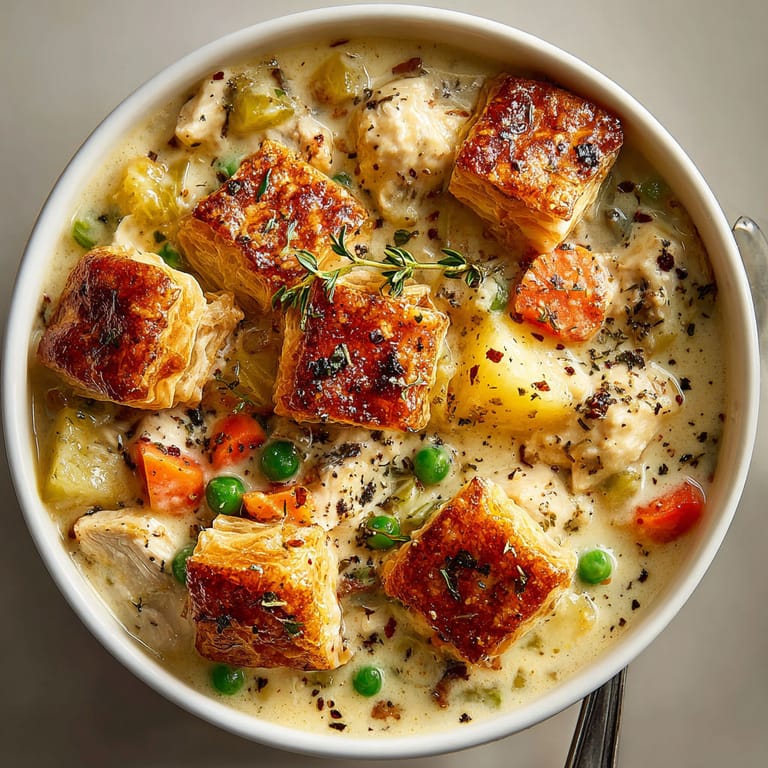 Save to Pinterest Creamy Chicken Pot Pie Soup brings all the nostalgia of home-baked pot pie to your table in the form of an easy comforting soup. Perfect for brisk evenings or whenever you need a little extra coziness, this recipe delivers everything you love about classic chicken pot pie yet spares you the fuss of making a pie crust from scratch. It is a frequent request from my family especially after long chilly walks together everyone gathers around the table for steaming bowls of this soul-warming dish.