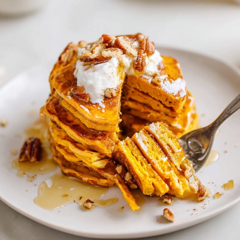 Low-fat ricotta can work if you prefer a lighter option, though the pancakes will be less creamy. For a gluten-free version, use a one-to-one gluten-free flour blend in place of regular flour. Almond or oat milk may be substituted for whole milk with a small loss of richness. Instead of pumpkin, try sweet potato purée for a slightly earthier taste and golden color.