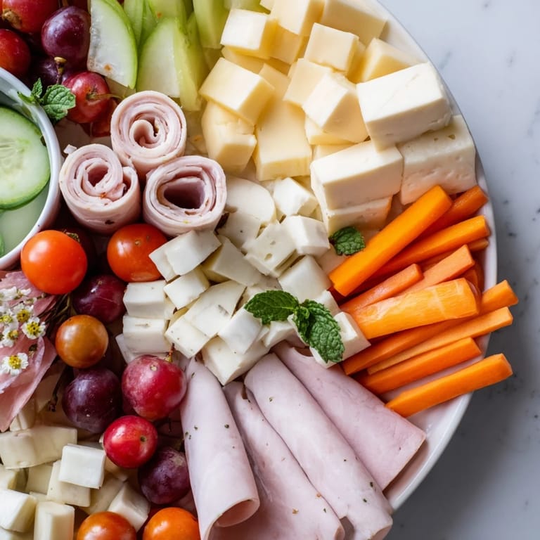 - 2. Fold or roll meats and place alongside cheeses.