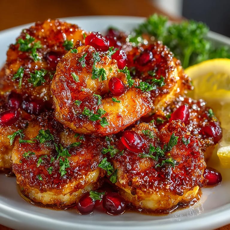 Save to Pinterest Garlic Butter Shrimp with Pomegranate Glaze brings restaurant-style flair right to your kitchen with simple everyday ingredients. Imagine juicy shrimp sizzling in garlicky butter, then coated in a sticky pomegranate glaze that wakes up every bite. The bright pop of pomegranate seeds and fresh parsley make this a showstopper for gatherings but it comes together so fast you could have it on a weeknight too.