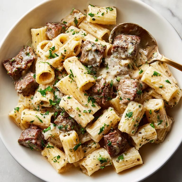 Save to Pinterest This garlic butter steak Parmesan rigatoni is the weeknight dinner I pull out when I want something extra cozy and truly satisfying. The steak sears up juicy and golden, the rigatoni clings to a silky garlic cream sauce, and those layers of Parmesan really bring the whole thing together. It hits all the cravings for decadence without taking hours in the kitchen.