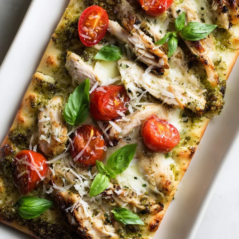 Save to Pinterest This grilled pesto chicken flatbread is perfect for busy weeknights when you want something hearty yet fresh. A crisp flatbread base holds juicy slices of grilled chicken, punchy basil pesto, melty mozzarella, and bright cherry tomatoes—a hit for family meals and casual gatherings alike.
