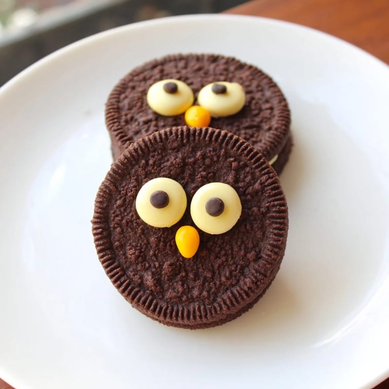- Owl Cookies: 16 round chocolate sandwich cookies (e.g., Oreos), 32 candy eyes (store-bought or homemade), 16 yellow or orange chocolate candies (for beaks, e.g., M&Ms or Reeses Pieces)