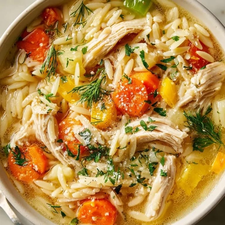 You can swap chicken breasts for boneless thighs if you prefer a richer flavor. If orzo is unavailable small shapes like ditalini or even rice work well though cooking time will vary. Fresh dill brings brightness but flat-leaf parsley is also delicious in the mix.