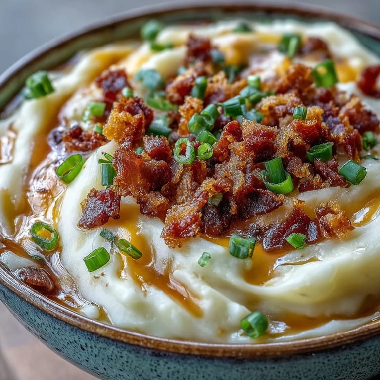The secret to this soup's depth lies in the combination of sautéed onions and garlic with a hint of paprika. As the russet potatoes simmer in the broth, they soften perfectly, ready to be blended into a creamy consistency. Finishing the dish with fresh green onions and crispy bacon bits adds the perfect crunch to every spoonful.