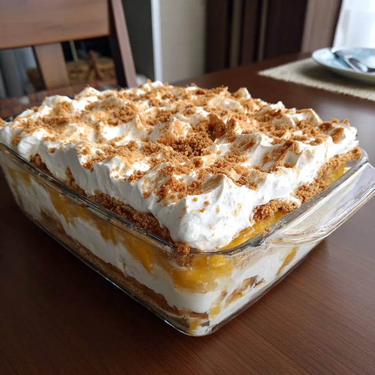 Serve each slice chilled right out of the fridge For extra flair add a sprinkle of toasted coconut or a dusting of crushed graham crackers on top This dessert pairs beautifully with hot coffee or a glass of chilled milk I sometimes serve it in clear glasses for individual parfaits at parties