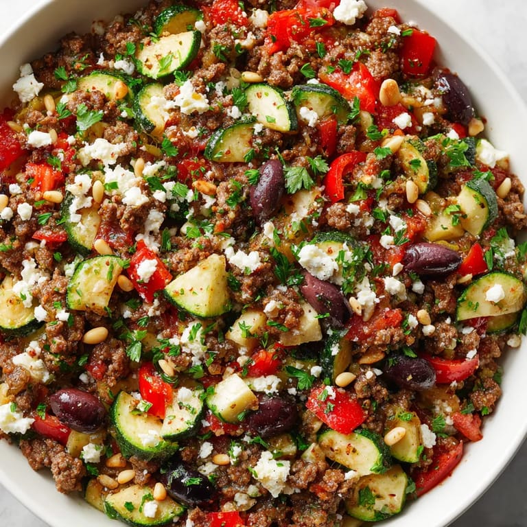 Save to Pinterest When you crave a meal that is balanced easy and layered with flavor this Mediterranean Ground Beef Stir-Fry checks every box for a weeknight dinner. The combination of golden-browned beef colorful vegetables and fragrant herbs comes together quickly in just one pan making clean-up almost as easy as the cooking.
