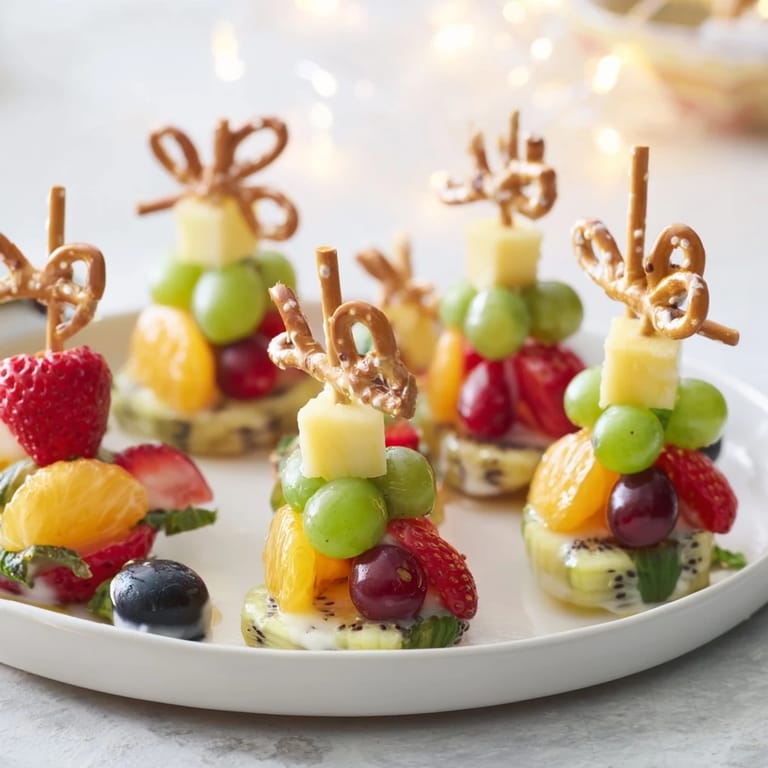 Save to Pinterest A vibrant and festive blend of fresh fruits, beautifully arranged to resemble holiday ornaments perfect for parties or as a healthy, eye-catching centerpiece.