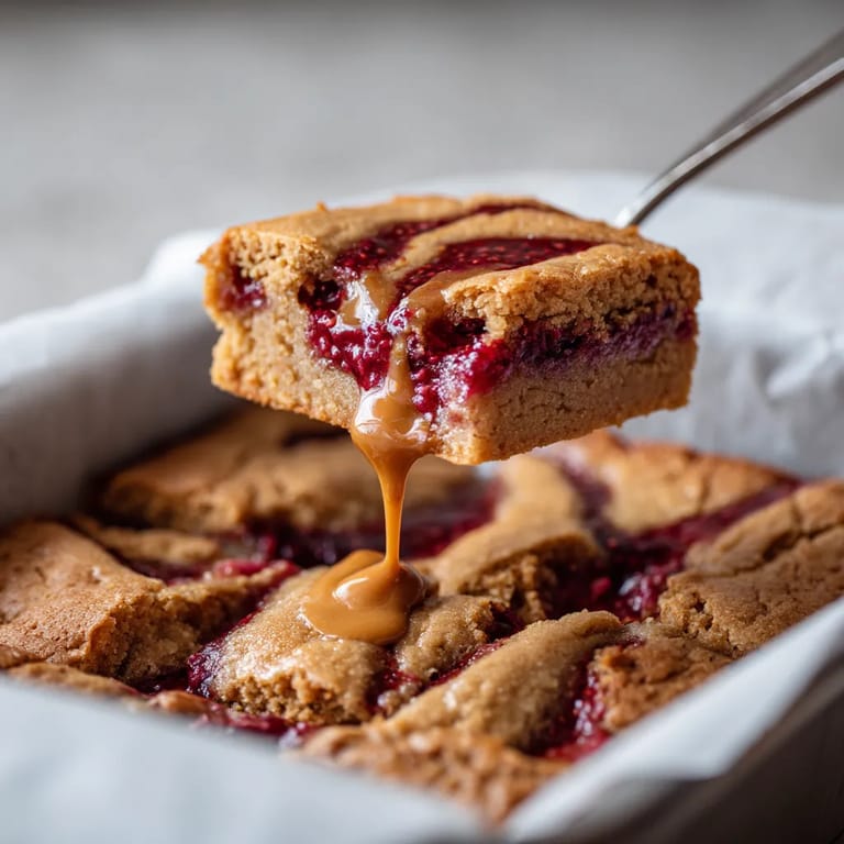 Feel free to switch the raspberry jam for strawberry or even blueberry if you prefer a milder fruit finish. Almond butter works well in place of peanut butter for a different nutty flavor but aim for a no stir type so the bars do not turn out greasy. You can also toss a handful of chocolate chips into the batter if you love that peanut butter chocolate combo.