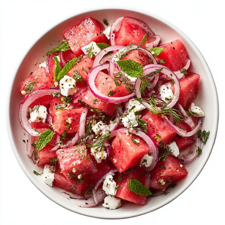 Save to Pinterest Pickle-Back Watermelon Salad brings together the sweetest moments of summer with a tangy twist. The juicy cubes of watermelon, punchy pickled onions, and creamy vegan feta all mingle for a salad that feels both surprising and addictive. With the added lift of fresh herbs, it has become my go-to for backyard gatherings and light lunches when the heat is high.