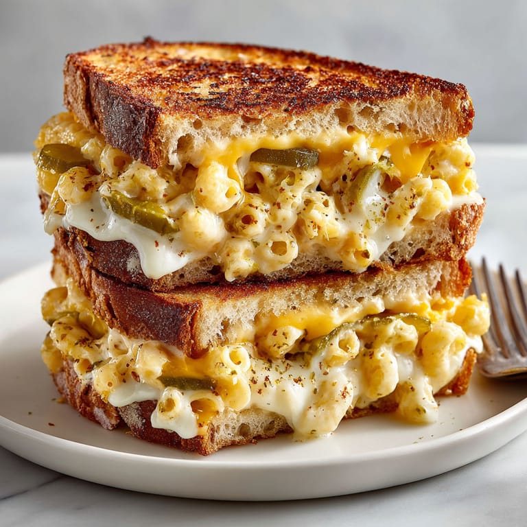 Save to Pinterest My own favorite bite of this sandwich is right where the molten mac and cheese meets the tang of the pickle. It is always a hit when guests gather for game day or late night snacks with friends.