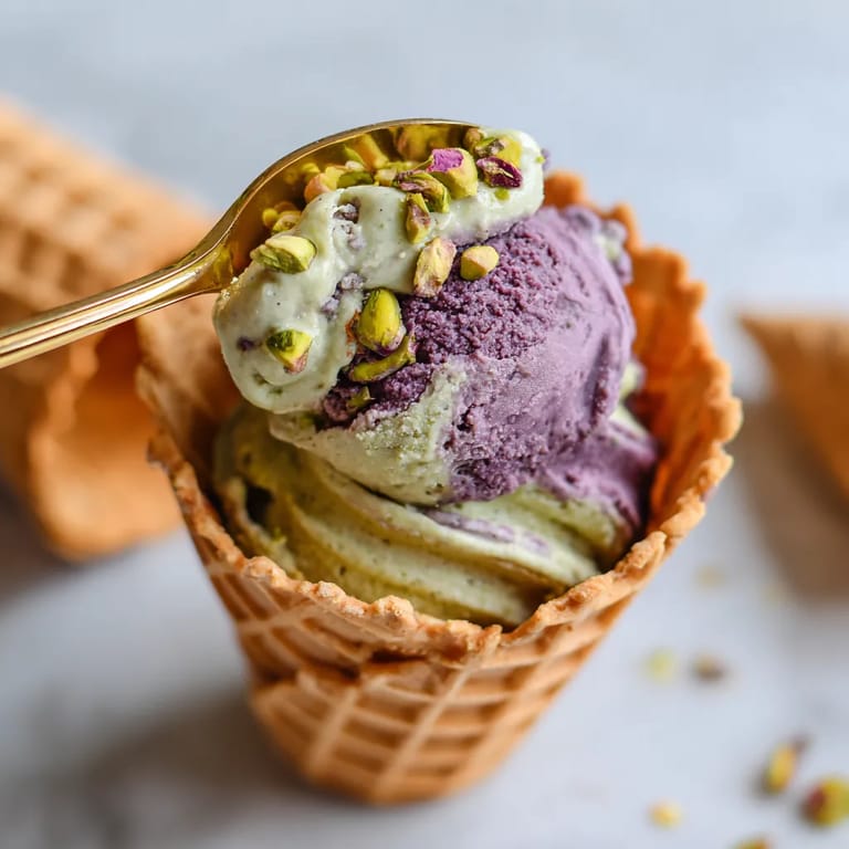 Save to Pinterest Pistachio Ube Soft-Serve Cones bring together creamy roasted pistachio and sweet purple ube swirled in a cone that is crisp yet gluten-free. This is the kind of dessert that captures attention for its playful color but wins hearts with its nutty rich flavor and smooth texture. It unites nostalgic Filipino flavors with modern soft-serve fun in a way that’s both playful and deeply satisfying.