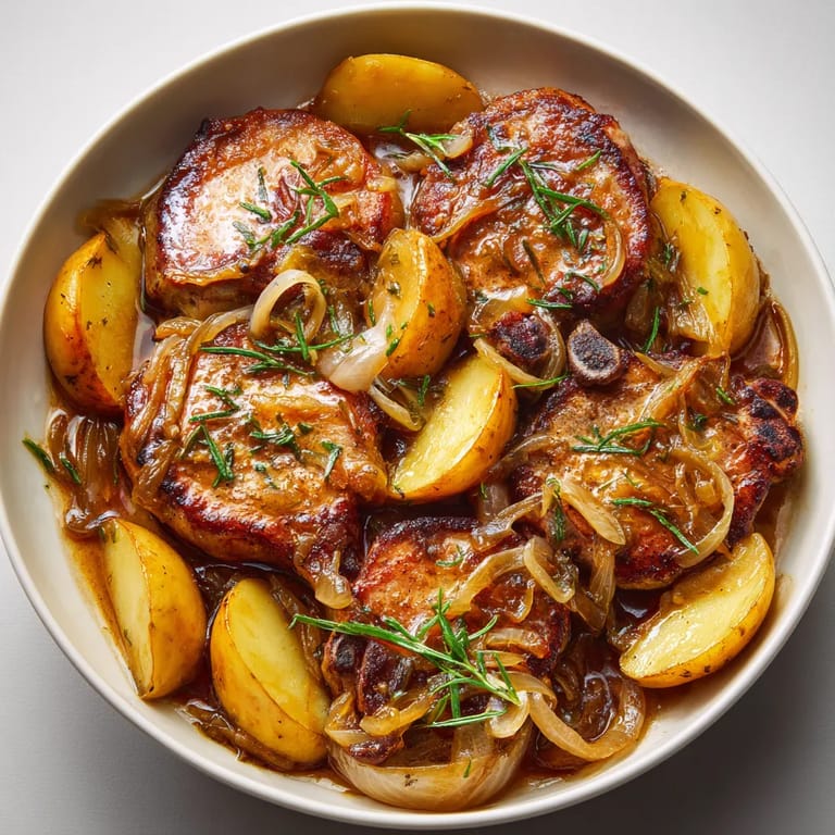 Save to Pinterest When chilly weather sets in, nothing satisfies quite like a plate of tender pork chops smothered in deeply caramelized onions and sweet slices of fresh seasonal apples. This classic French-inspired dinner delivers comfort with minimal fuss and turns everyday ingredients into something special, especially when cooked in a splash of cider for richness. Perfect as a cozy autumn meal or a quick weeknight feast