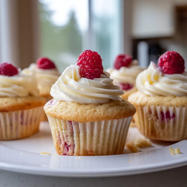 The secret to these cupcakes is coating the raspberries in a light dusting of flour before folding them into the batter. I learned this trick from my grandmother who was known for her fruit-filled bakes. She always said the flour coating prevents the berries from sinking to the bottom during baking, ensuring perfect distribution throughout each cupcake.