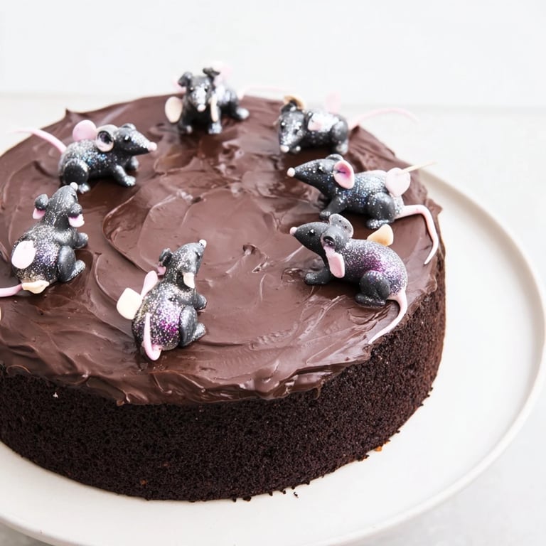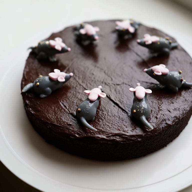 Save to Pinterest A whimsically dark and decadent dessert, this Rat Cake with Whipped Chocolate Ganache celebrates avant-garde patisserie through a moist chocolate base and playful rat-shaped decorations. Combining rich flavors with a touch of mischievous artistry, it offers a unique treat for creative bakers.