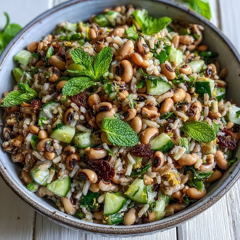 Save to Pinterest My aunt brought this salad to a Fourth of July potluck years ago, and I watched grown men go back for thirds of what I'd assumed was just another side dish. The magic wasn't in anything fancy—just black-eyed peas, brown rice, and the brightest lemon-mint dressing that somehow made everything taste like summer itself. She caught me sneaking bites straight from the serving bowl and laughed, saying the secret was letting it sit so the flavors could get to know each other. That afternoon taught me that the best recipes often look humble until you actually taste them.