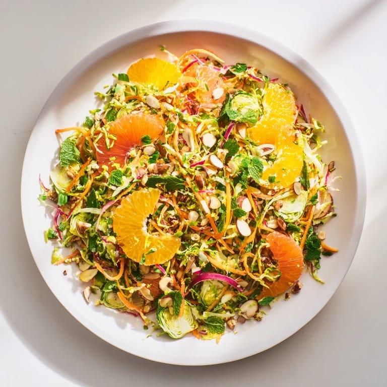 Save to Pinterest A vibrant, refreshing slaw featuring thinly sliced Brussels sprouts tossed with juicy citrus, fresh herbs, and a light, sparkling citrus vinaigrette. Perfect as a side dish or light lunch.
