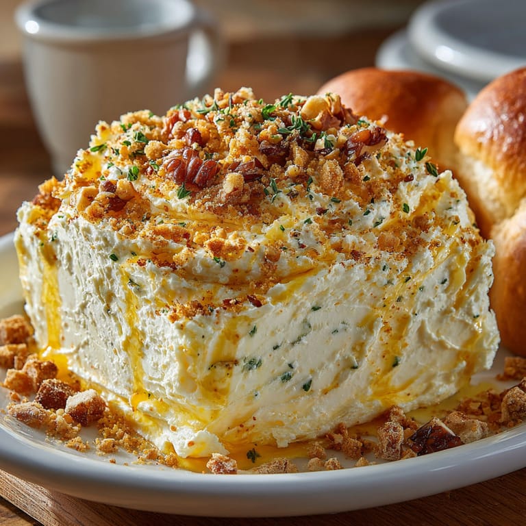 Spread the mixture on a serving board, sprinkle toppings, and offer warm bread or rolls for dipping and spreading.