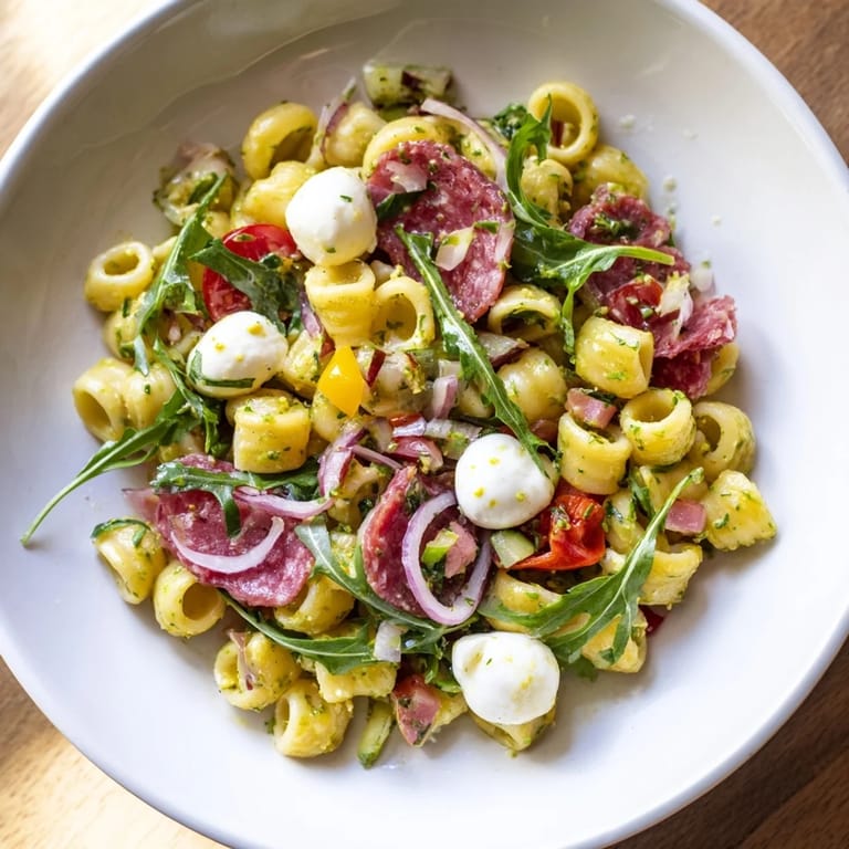 I brought this to a friend's rooftop birthday party last month and watched three different people ask for the recipe before they even finished their first serving. There's something about the way the peppery arugula wilts just slightly against the warm pasta while the mozzarella stays cool and creamy that makes every forkful feel balanced. By the time I went back for seconds, the bowl was completely empty, which I'm taking as the highest possible compliment.