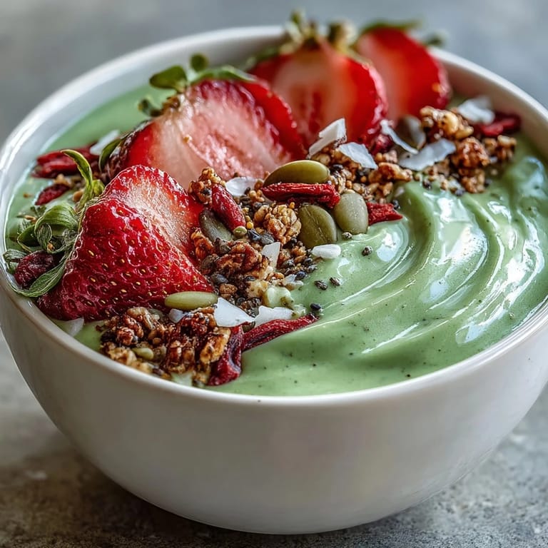 The magic of this smoothie bowl lies in its perfect balance of flavors and textures. The frozen fruit creates a thick, spoonable base that's more satisfying than a regular smoothie, while the matcha adds a subtle earthiness that complements the sweet strawberries beautifully. Greek yogurt brings creaminess and protein, making this bowl substantial enough to keep you full until lunch. The toppings aren't just for show—they add essential nutrients, healthy fats, and that satisfying crunch that makes every bite interesting. This fusion-inspired recipe is endlessly adaptable to your dietary needs and taste preferences.