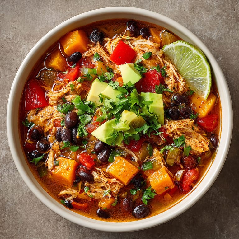 Use butternut squash instead of sweet potato in the fall. Stir in fresh corn during summer months. Garnish with extra herbs when cilantro is in season.