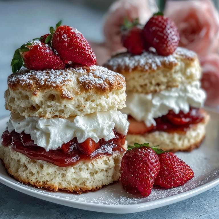 Save to Pinterest There's something about assembling a strawberry shortcake that turns an ordinary kitchen into something almost sacred. My hands were shaking the first time I made this for someone I wanted to impress—not from nerves about the baking itself, but from the weight of wanting to get it right. The buttery shortcakes emerged from the oven golden and warm, and suddenly the whole kitchen smelled like vanilla and toasted flour, like something worthy of the occasion. I've learned since then that this dessert isn't complicated, but it does ask you to slow down and pay attention to each layer, each whisper of cream.