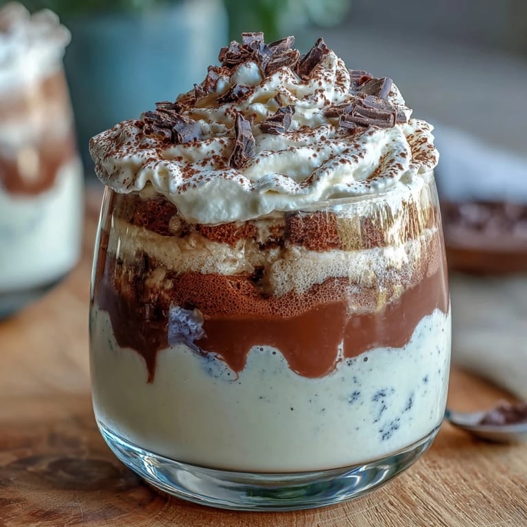 Diese Tiramisu-Cups kommen am besten direkt aus dem Kühlschrank auf den Tisch—schön kalt, mit einem frisch gesiebten Hauch Kakaopulver kurz vor dem Servieren. Als optionale Krönung eignen sich eine Rosette geschlagene Sahne, zarte Schokoladenraspeln oder ein einzelnes Kaffeebohne als dekoratives Element. Die Cups passen wunderbar zu einem starken Espresso oder einem cremigen Cappuccino und machen sich hervorragend als Abschluss eines festlichen Abendessens oder als eleganter Genuss für ein besonderes Kaffeekränzchen.