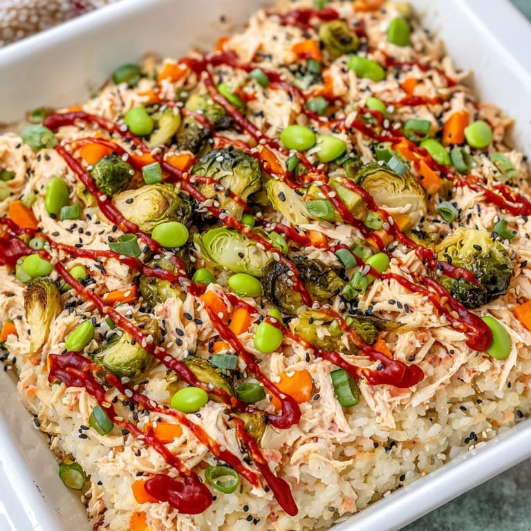 Save to Pinterest A festive twist on the viral sushi bake featuring layers of seasoned sushi rice creamy crab filling and a medley of colorful roasted holiday vegetables. Perfect for sharing at gatherings.