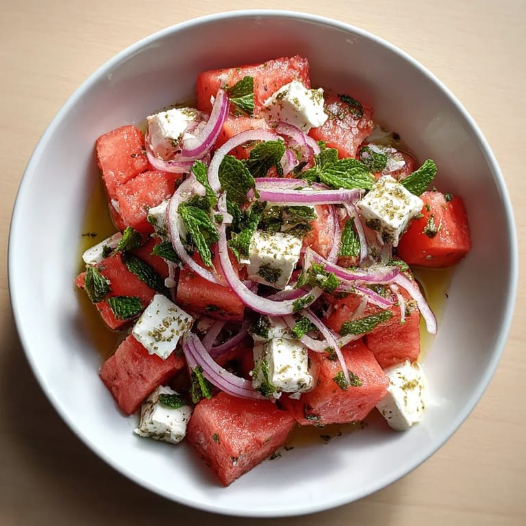 Save to Pinterest Juicy watermelon meets creamy feta and cooling mint in this Mediterranean-inspired salad that is pure summer refreshment. If you are searching for a dish that sparkles with color and flavor yet leaves you feeling light and energized, this is the one I turn to on sweltering afternoons or when I crave a fuss-free appetizer for friendly gatherings.