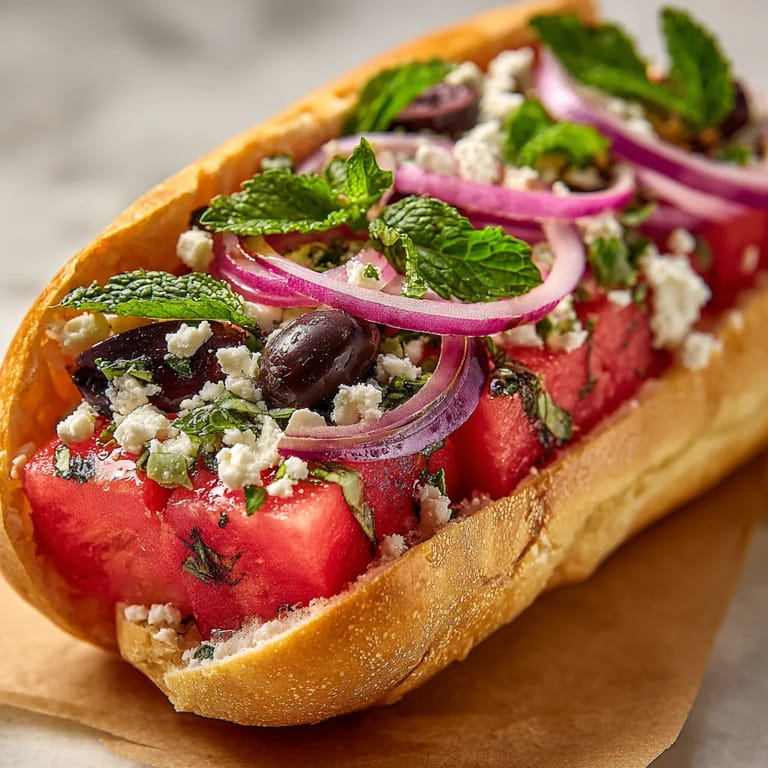 Save to Pinterest This watermelon sandwich delivers next-level refreshment and bold Mediterranean flavors in every bite. Juicy watermelon pairs with creamy feta, punchy Kalamata olives, aromatic fresh herbs, and a crisp toasted roll. It is my favorite pick for summer picnics or when I want something a little unexpected but familiar.