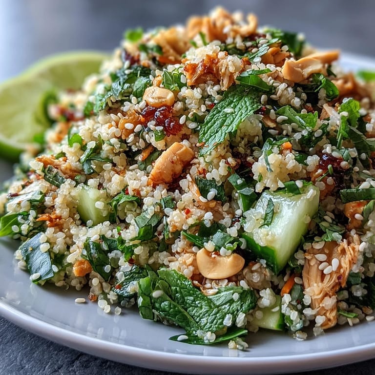 Save to Pinterest My neighbor handed me a container of leftover rotisserie chicken one Sunday afternoon, insisting I take it before it went bad. I had a bag of pearl couscous I'd been meaning to use and a fridge drawer full of wilting herbs. What started as a pantry rescue turned into one of those accidental wins—nutty sesame oil, bright lime, and that chewy couscous soaking up every bit of flavor. I've made it a dozen times since, always with whatever vegetables need using up.