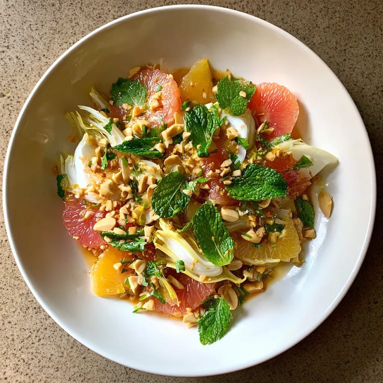 Save to Pinterest Banana Blossom and Citrus Toss delivers bold freshness with every bite. Tangy grapefruit and silky banana blossom blend beautifully with crunchy peanuts and a zesty tamarind-honey dressing. This salad livens up any meal and is perfect when you want something light yet full of character.