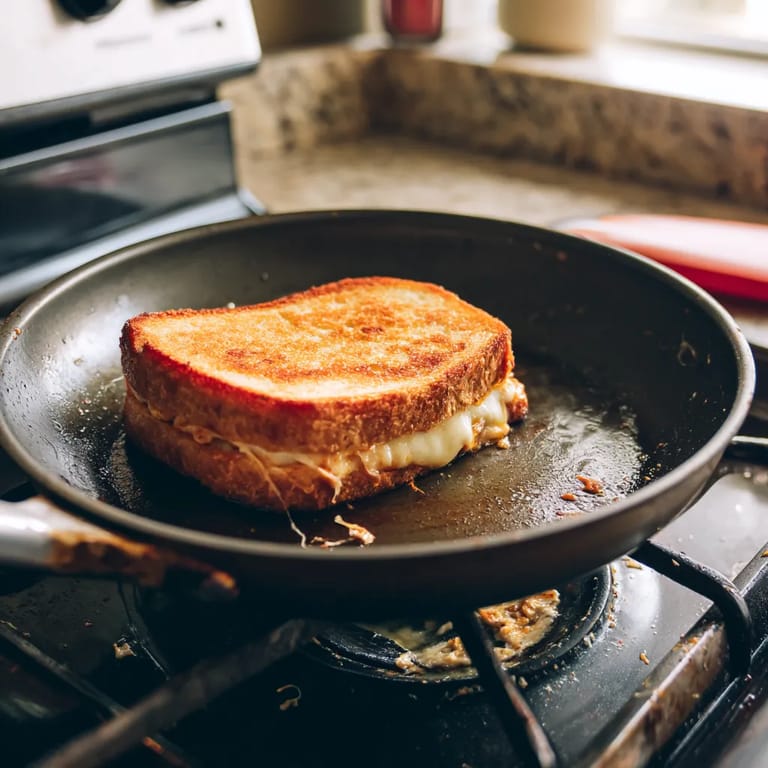 Use medium-low heat rather than high heat, which gives the cheese time to melt while the bread gradually turns golden. If the bread is browning too quickly, lower the heat and consider covering the pan with a lid for 30-60 seconds to help the cheese melt without further browning the bread.