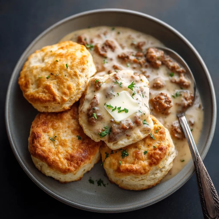 This classic Southern breakfast varies across different regions of the American South. In some areas particularly the Carolinas you might find the gravy made with country ham instead of sausage creating a saltier more intensely flavored version. Tennessee style often includes a bit of coffee in the gravy for depth while Appalachian versions might incorporate bacon grease alongside or instead of sausage drippings. The biscuits themselves also vary from fluffy to flaky depending on regional preferences and family traditions.