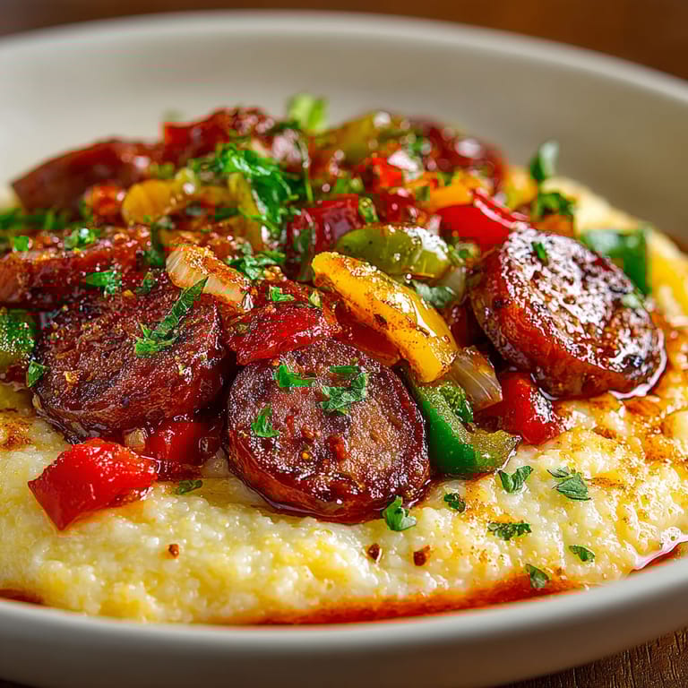 Grits are deeply rooted in Southern food traditions with ties to Indigenous American cuisine. The Cajun spin with sausage and peppers reflects the vibrant cooking of Louisiana kitchens where everything gets a dose of spice and the mornings start strong.