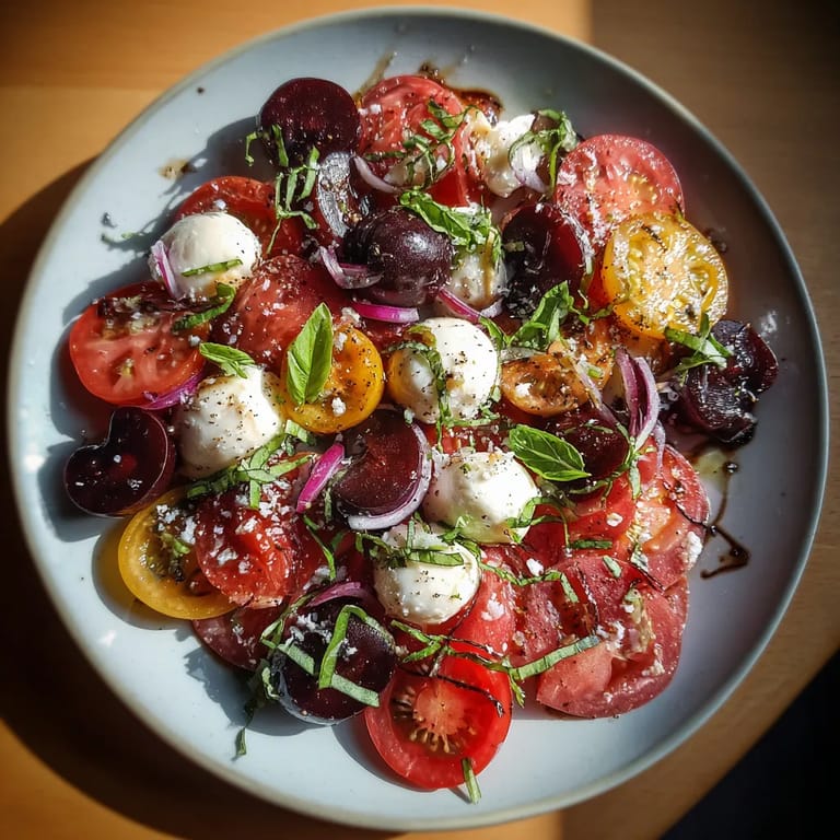 Save to Pinterest Sweet summer cherries meet creamy buffalo mozzarella in this Cherry Blossom Caprese a fresh twist on the classic salad where Japanese and Italian flavors come together beautifully. With bright heirloom tomatoes, aromatic Thai basil, and little bursts of white balsamic pearls in each forkful, it is a feast for the eyes and palate. I always pull out this salad for outdoor dinners and friends are instantly charmed by its unique color and taste.