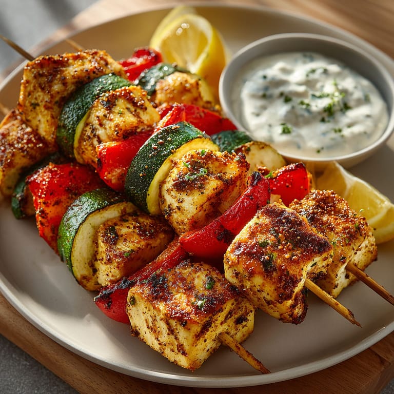 Save to Pinterest Quick colorful and packed with flavor these chicken and veggie skewers whisk me right to summer evenings with friends around the grill The cooling garlic yogurt dip adds the perfect creamy touch to each bite making it a reliable dinner when I want something healthy fast and bursting with Mediterranean comfort