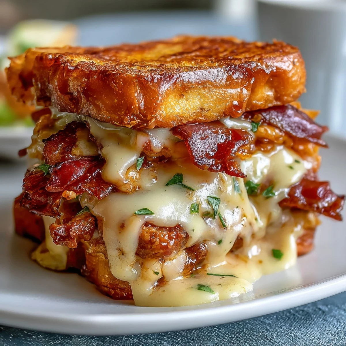 Chopped fresh parsley adds a bright, herbal note, balancing the rich cheese and smoky bacon flavors.