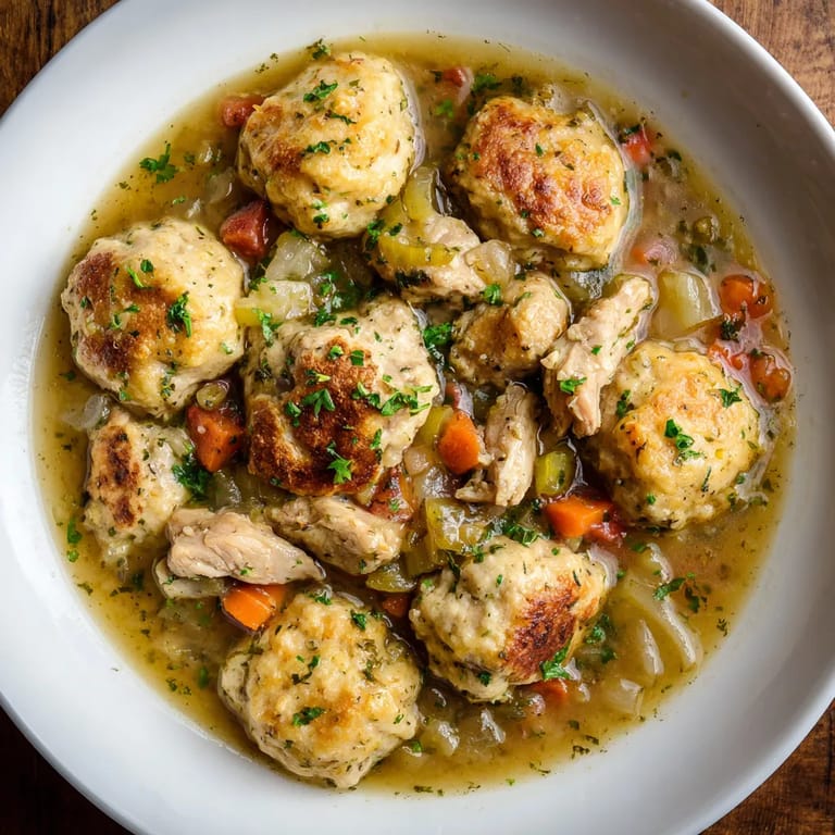Save to Pinterest This French-inspired Poulet et Boulettes brings all the homey comfort of classic chicken and dumplings but with a weeknight-friendly shortcut for the dumplings. Perfect for days when you crave something soothing and hearty, it fills the kitchen with warmth and takes the fuss out of traditional recipes. The biscuit trick transforms humble canned dough into fluffy, craveable boulettes swimming in a savory broth packed with tender chicken and vegetables.